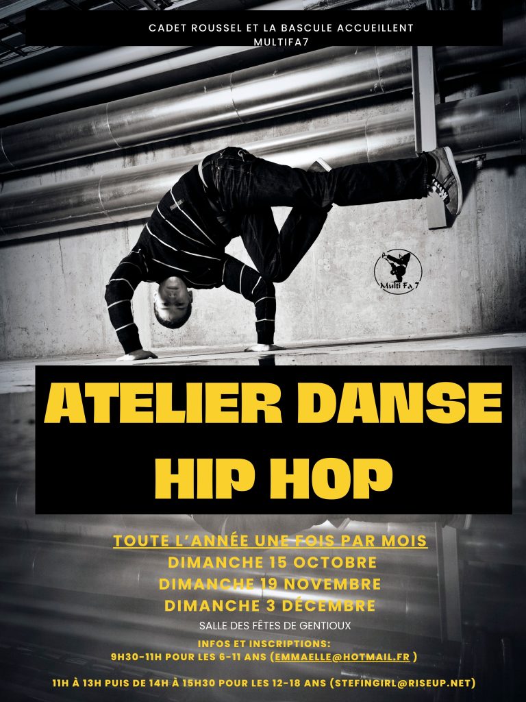Sur l’année scolaire 2023-2024, les associations Cadet Roussel et La Bascule organisent des ateliers de danse Hip Hop pour les 6-11 ans et les 12-18 ans avec Multifa7 à Gentioux !
