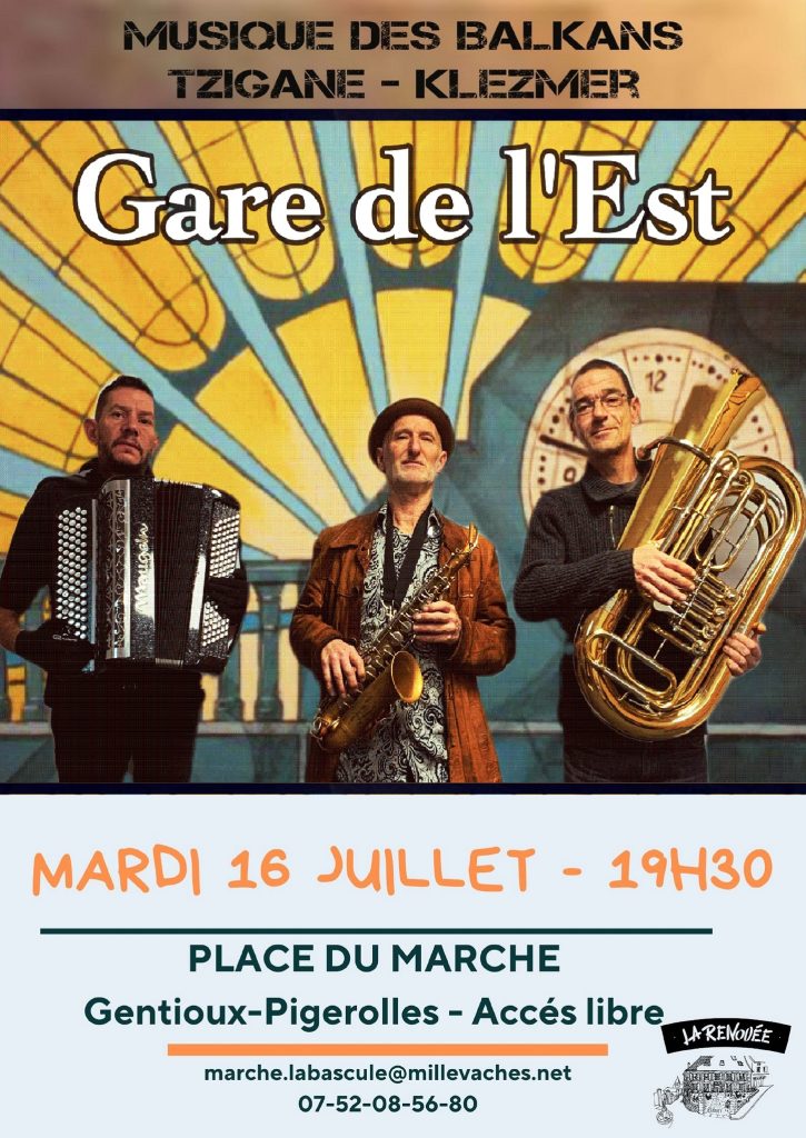 Il n’y a pas qu’à Amsterdam qu’on sait jouer la musique Klezmer. Le Limousin a lui aussi ses représentants du style : Gilles Puyfagès (Accordéon), Simon Andrieux (Tuba) et Japp Mulder (clarinette, chant, saxophone) ont formé GARE DE L’EST pour faire danser sur le repertoire des musiques d’Europe de l’Est.