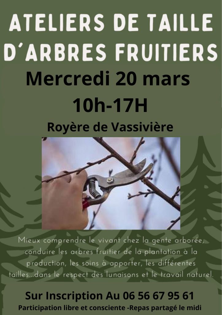 Mercredi 20 mars, Atelier de taille d’arbres fruitiers de10 à 17H sur Royère de Vassivière.