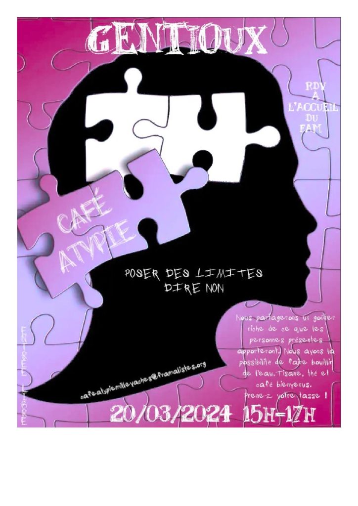 Le FAM nous accueillera mercredi 20 mars 2024 de 15 à 17h pour la 4e rencontre de la nouvelle version du « café atypie » : des rencontres autour de l’autisme et autres atypies sur le plateau.