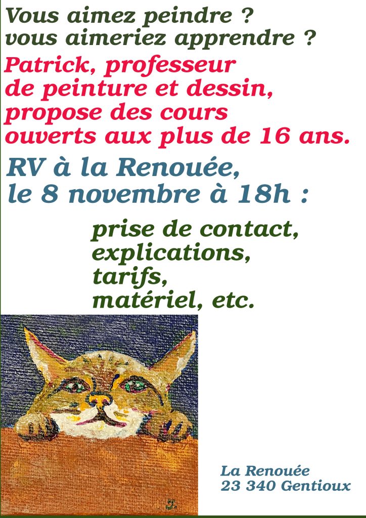 RDV à La renouée, le 8 novembre à 18h : prise de contact, explications, tarifs, matériel, etc.