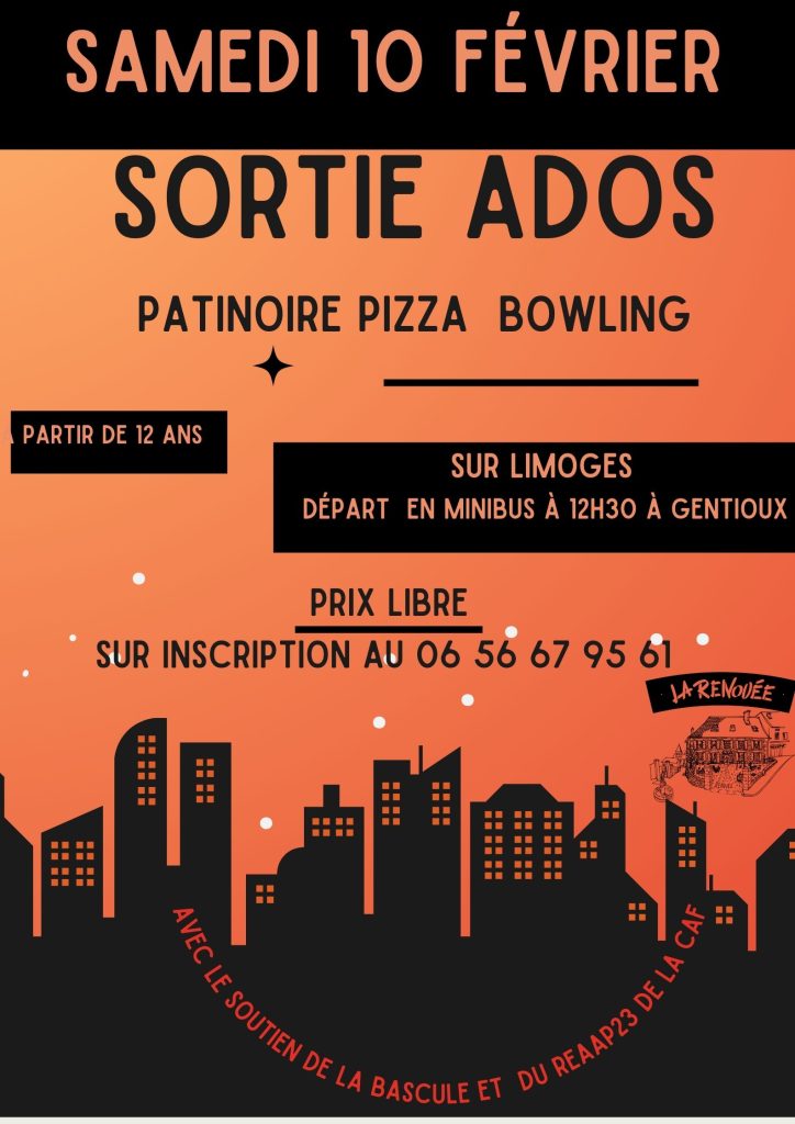 L’association La Bascule, avec le soutien de la CAF de la Creuse (dans le cadre du financement REAAP 23 ) organise plusieurs sorties à l’intention des adolescents et nous commençons l’année par une première sortie sur Limoges Patinoire +Pizza+Bowling.