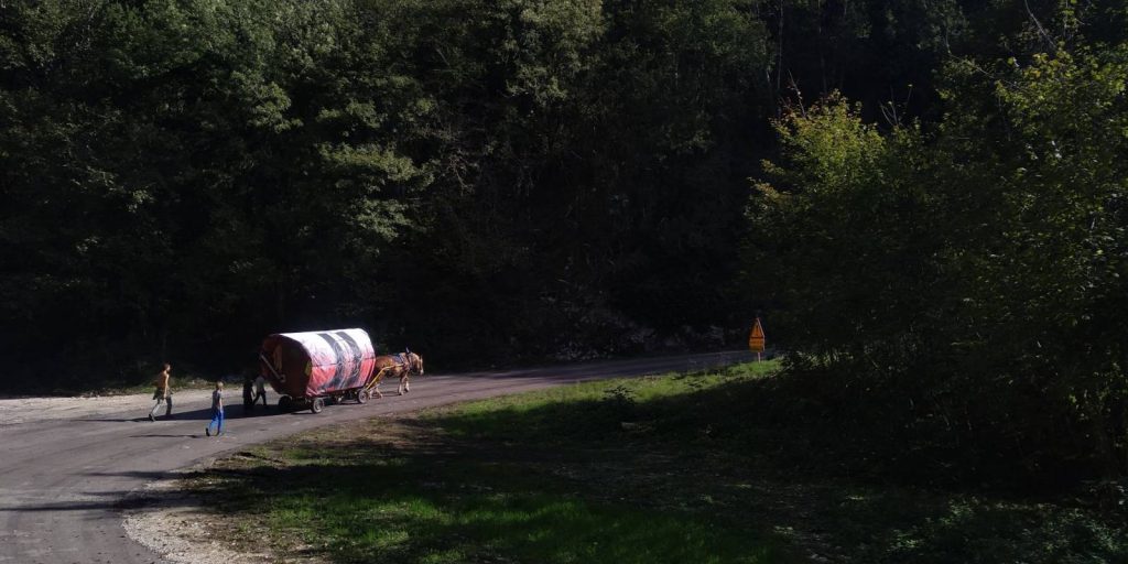 Dans un jeu interactif avec le public, un saltimbanque raconte des histoires vécues durant 3 années à cheval et à roulotte, dans les pays d’Europe de l’est.