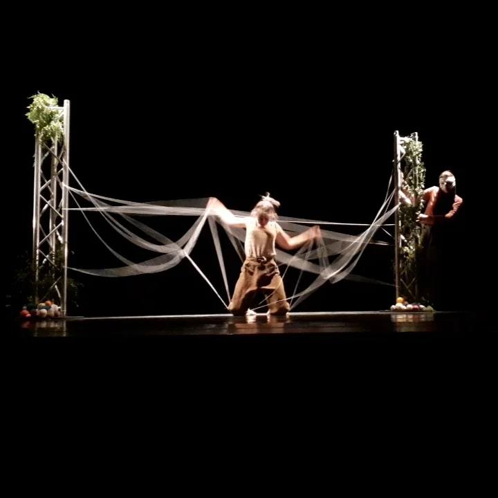 Sous le regard de Clotho et Lachésis, deux des trois moires, déesses grecques gardiennes et tisserandes du destin, s’entremêlent Histoire, poésie, onirisme, questionnements, émotions, mémoire. Ainsi resurgissent, tantôt par les mots, tantôt par la danse, les actions des femmes au camp de la paix de Greenham Common, la langue de Monique Wittig, l’imaginaire de Wendy Delorme, les réflexions de Starhawk. Les deux artistes sur scène, danseuses et comédiennes, nous invitent à suivre le fil des petites histoires qui tissent la Grande et à envisager la suite avec une sensibilité écoféministe.