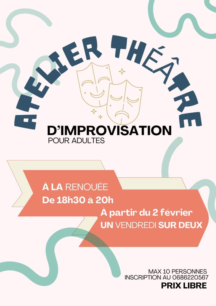 Venez vous initier au théâtre d’improvisation avec Julie ! A la renouée, de 18h 30 à 20h.