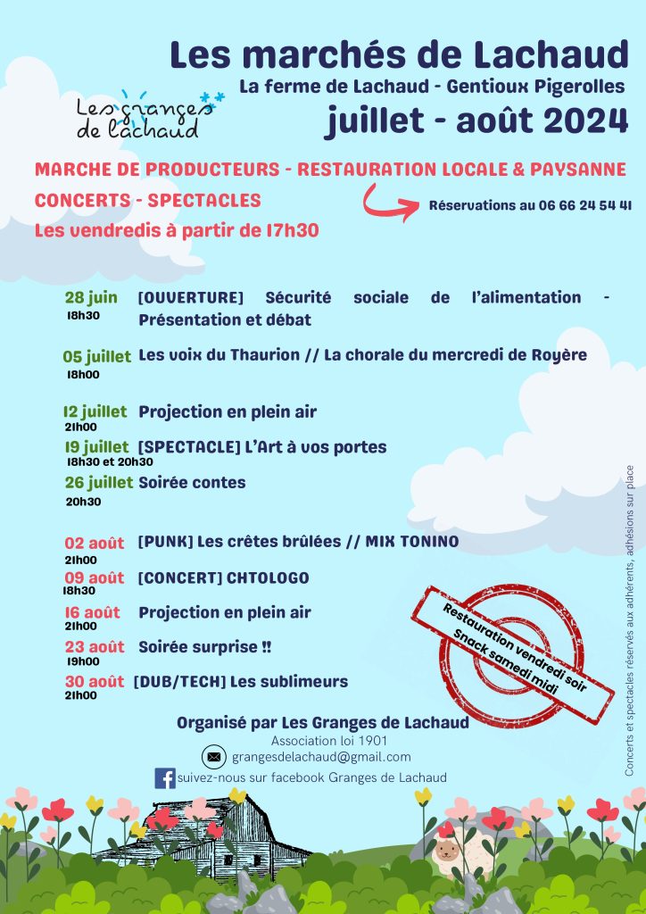 Juillet et août: Les marchés de Lachaud Veuillez laisser ce champ vide Suivez l'agenda et les actualités de l'association Nous vous enverrons entre 1 et 5 messages par mois et n'utiliserons votre adresse que pour celà. Vous pourrez vous désinscrire à tout moment. Vérifiez votre boîte de réception ou votre dossier d’indésirables pour confirmer votre abonnement !